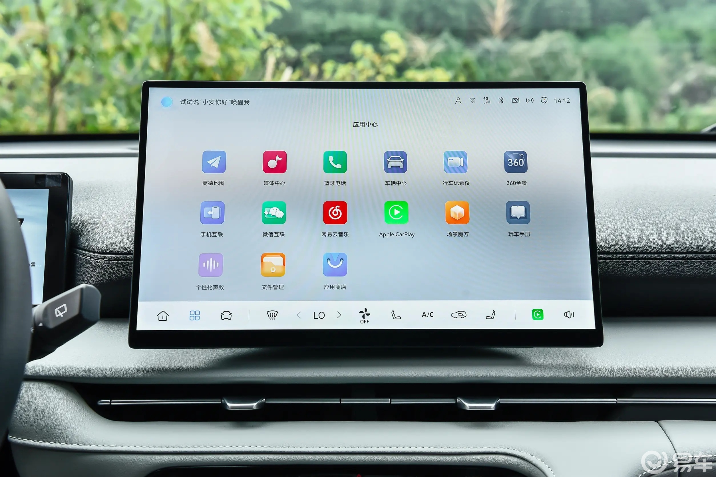 内饰变化较大,新车取消了一体式双联屏设计,改为10.25英寸仪表盘+14.6英寸悬浮式中控屏的组合。此外,空调控制区从触控式调整为物理按键。新车搭载天枢智能OS车机操作系统,支持苹果CarPlay、HUAWEI HiCar、Carlink、荣耀互联等多种手机互联协议,语音交互接入了AI大模型。