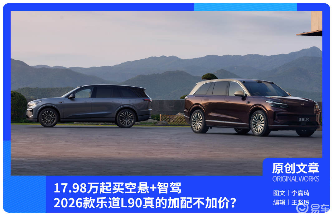 2026款乐道L90正式上市,官方指导价26.58万元起,还能选BaaS电池租用方案,车价直接降到17.98万元起。