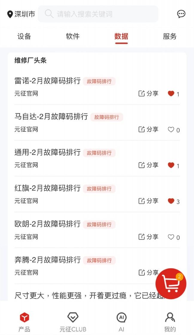 提供车辆数据档案查询及行业资讯服务;实时更新元征官网新闻与车型数据排行,并基于地理位置智能推荐附近修理厂,促进行业交流与协作。
