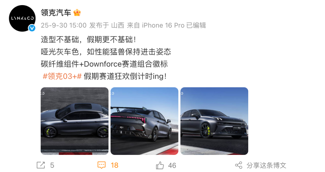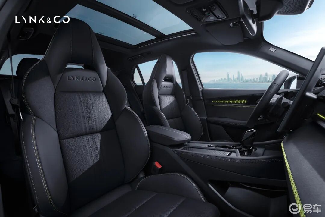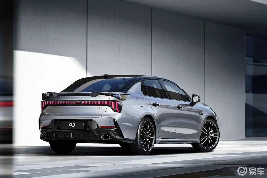 车身侧面,新款领克03与现款车型保持一致,新款领克03+装配亮黑色的双五辐式轮辋以及荧光绿色的对向四活塞前制动卡钳,侧裙部分并未搭载碳纤维套件。据了解,新款领克03+将新增哑光灰车色(非正式命名),另一款名为极光银的全新配色将应用于新款领克03。车尾部分,新款领克03对后包围进行弱化,并通过全新的大尺寸后扰流板增加视觉重心,不过新车仍保留双边共两出的排气布局。新款领克03+依旧搭载了固定式大尺寸碳纤维尾翼,尾翼端板上配有Downforce+赛道的组合样式徽标,后包围底部增加了碳纤维套件,两端同样配有小尺寸的风刃造型。