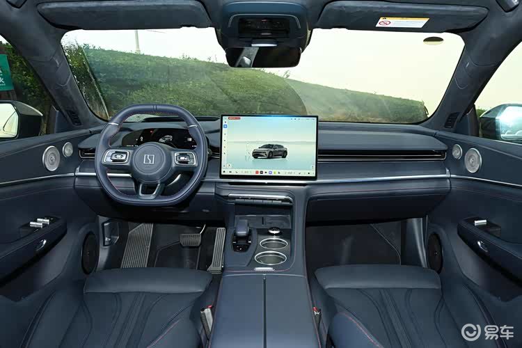 进入车内,整体布局与2025款基本一致,但功能性配置有明显增补。贯穿式空调出风口采用带亮银色装饰的新造型,中控台和门板取消斜向缝线,前门板区域增加音响单元。中控台中央部分触控按键改回实体键设计。新增256色氛围灯系统,支持双色渐变、多主题动态光效、扬声器光幕,可与驾驶模式、音乐律动、DOW开门警示等功能联动。音响升级为29扬声器的ZEEKR Sound Max系统,天幕更换为智能星空天幕。