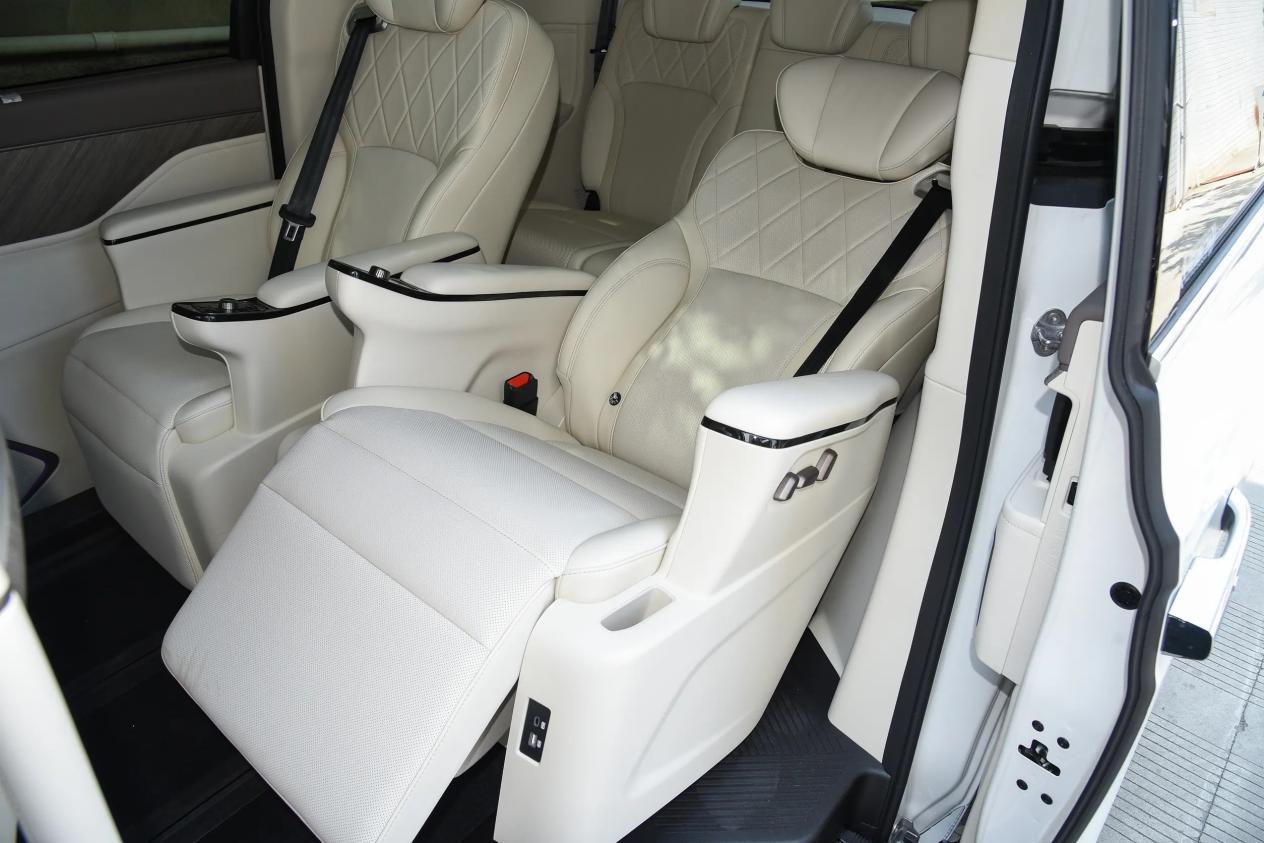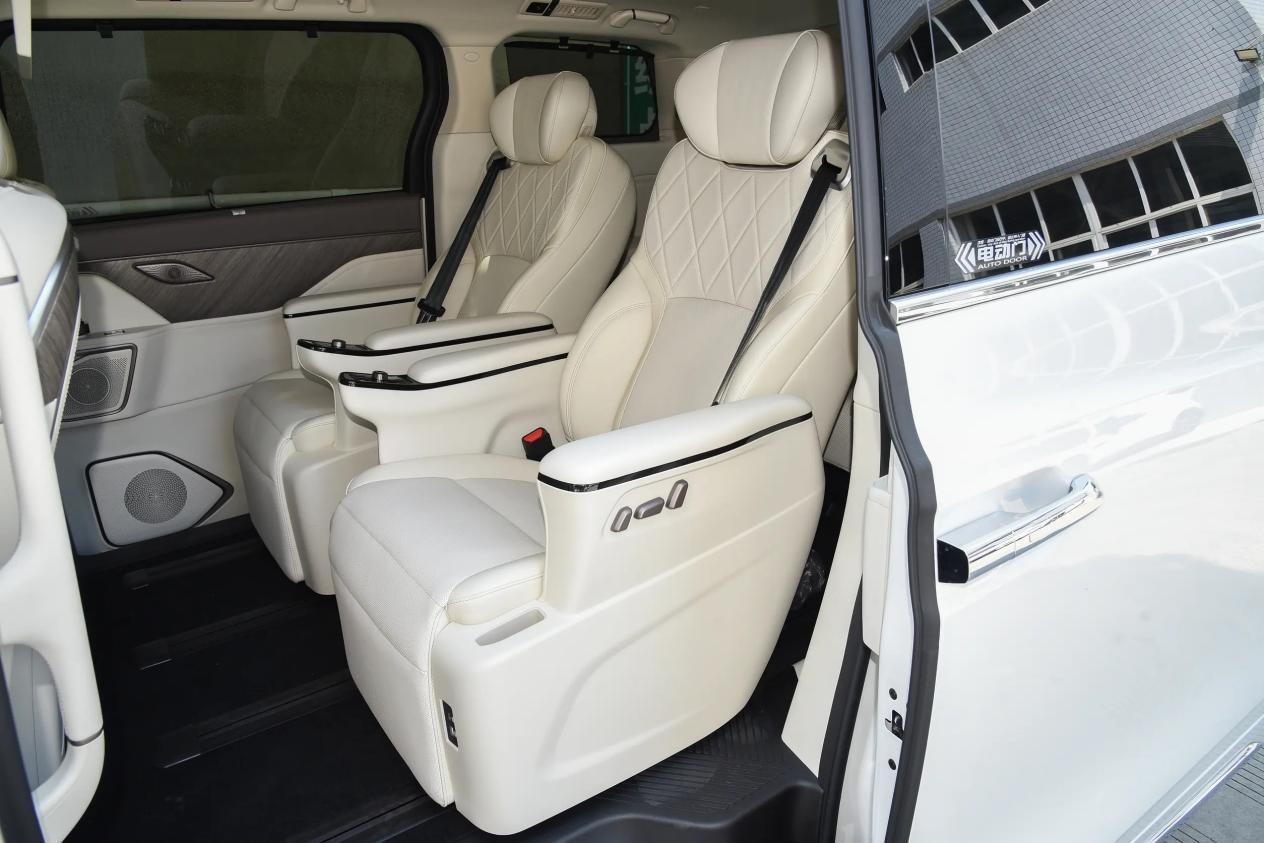 二排座椅标配双活动扶手休闲座椅,支持3档通风加热和两向电动腿托,活动扶手宽度58毫米、总行程120度,方便阅读、休憩和上下车。座椅面料选用高级材质,填充物软硬适中,长时间乘坐不会感到疲劳。用户还可以选装双实体按键零重力座椅,该座椅采用人体工程学定义的零重力设计,拥有一键零重力/复位模式;提供10点式按摩/通风(含靠背)/加热,NAPPA高级真皮与航空级宽适扶手,且座椅调节采用全实体按键,简单直观,闭眼也可以盲操,大大提升使用便利性。
