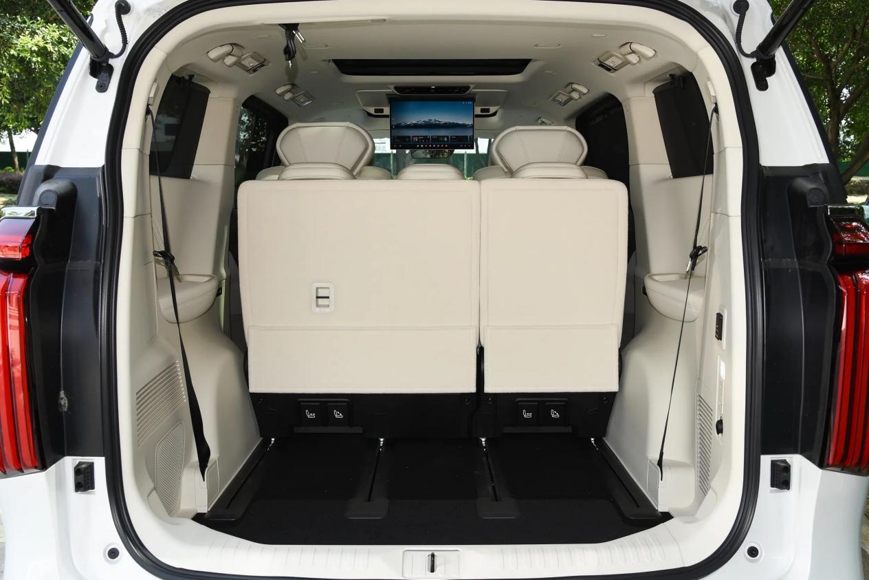 风琴式行李舱是空间设计的一大亮点,三排采用4/6分式蝶式设计、行李舱空间如风琴变换,容积灵活可变,满载情况下,三排座椅靠后时,后备厢还有233升容积,在将三排座椅放倒的情况下,后备厢可扩展到1725升。在7人舒适乘坐时,能容纳7个20寸行李箱或组合(如1个28寸+1个24寸+2个20寸)。第三排座椅采用手动调节,可快速精准地前后调节行程,拥有很大的调节灵活性。考虑到家庭出行时行李数量不固定的特点,让空间利用率得到优化。