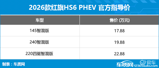 12月16日,红旗旗下全新车型HS6 PHEV正式上市,新车共推出3款车型,官方指导价为17.88-22.88万元。同时,官方还推出启航礼、智享礼等多项购车限时权益。
