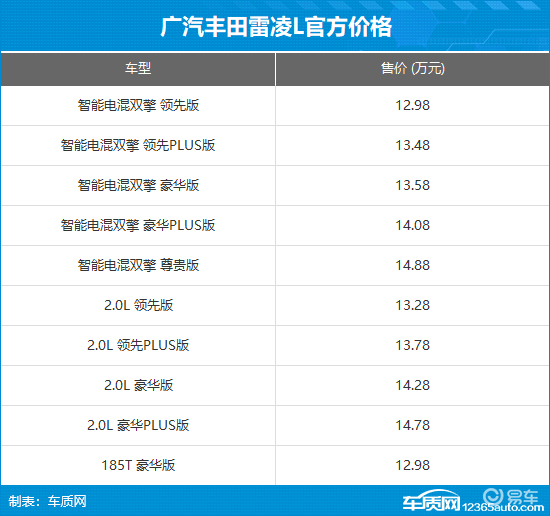 12月21日,广汽丰田雷凌L正式上市,此次共推出10款车型,售价12.98-14.88万元。新车主要针对轴距进行加长,并采用家族全新内饰设计。动力方面,雷凌L提供1.8L油电混动、2.0L自然吸气以及1.2T涡轮增压发动机车型可选。