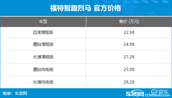 12月19日,江铃福特智趣烈马正式上市,新车推出5款车型,售价区间22.98-28.28万元。新车定位中大型SUV,搭载增程和纯电两种动力,可满足不同用户需求。