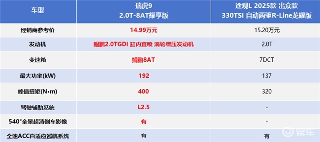 在动力方面,途观L的表现能满足家庭出行的基础需求。2.0T+7挡湿式双离合组合日常通勤够用,但满载全家出游时,提速超车略显吃力,驾控体验平淡。安全辅助配置较为基础,缺少540度透明影像、车道保持等实用功能,新手停车入库、高速长途自驾时,少了一份安心保障。