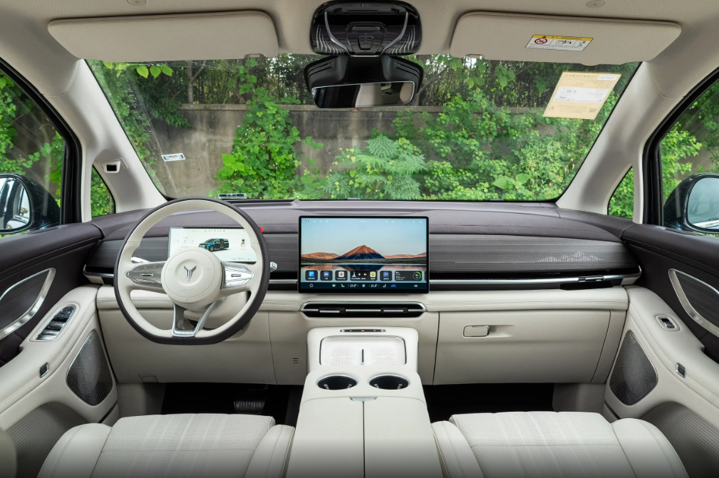 进入车内,两者在内饰设计上展现出了对豪华与科技的不同理解。高山9的内饰强调用料的高档与豪华氛围的营造,大面积的Nappa真皮包裹配合木质饰板,触手可及的区域均为软性材质,车内二排配备了零重力航空座椅以及可选装的动态星空穹顶,进一步提升了座舱内的档次感。岚图梦想家的内饰则呈现出了不同的思路,乾崑版车型提供了华为鸿蒙座舱设计,15.6英寸悬浮式中控屏与10.25英寸液晶仪表形成联动,加上电子怀挡和极简的物理按键,让整个车厢的科技氛围更加浓郁,车机生态的丰富度和便捷性是其核心优势。