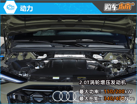 动力方面,全新奥迪Q5L全系标配2.0T发动机,分为高低功率两个版本,低功版最大功率为150kW,最大扭矩340N·m;高功版最大功率达到200kW,最大扭矩为400N·m,传动系统均匹配7挡湿式双离合变速箱。