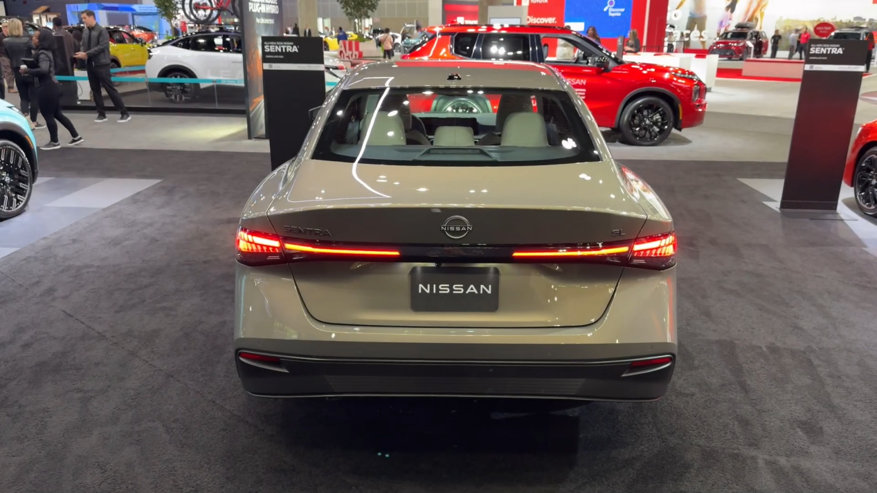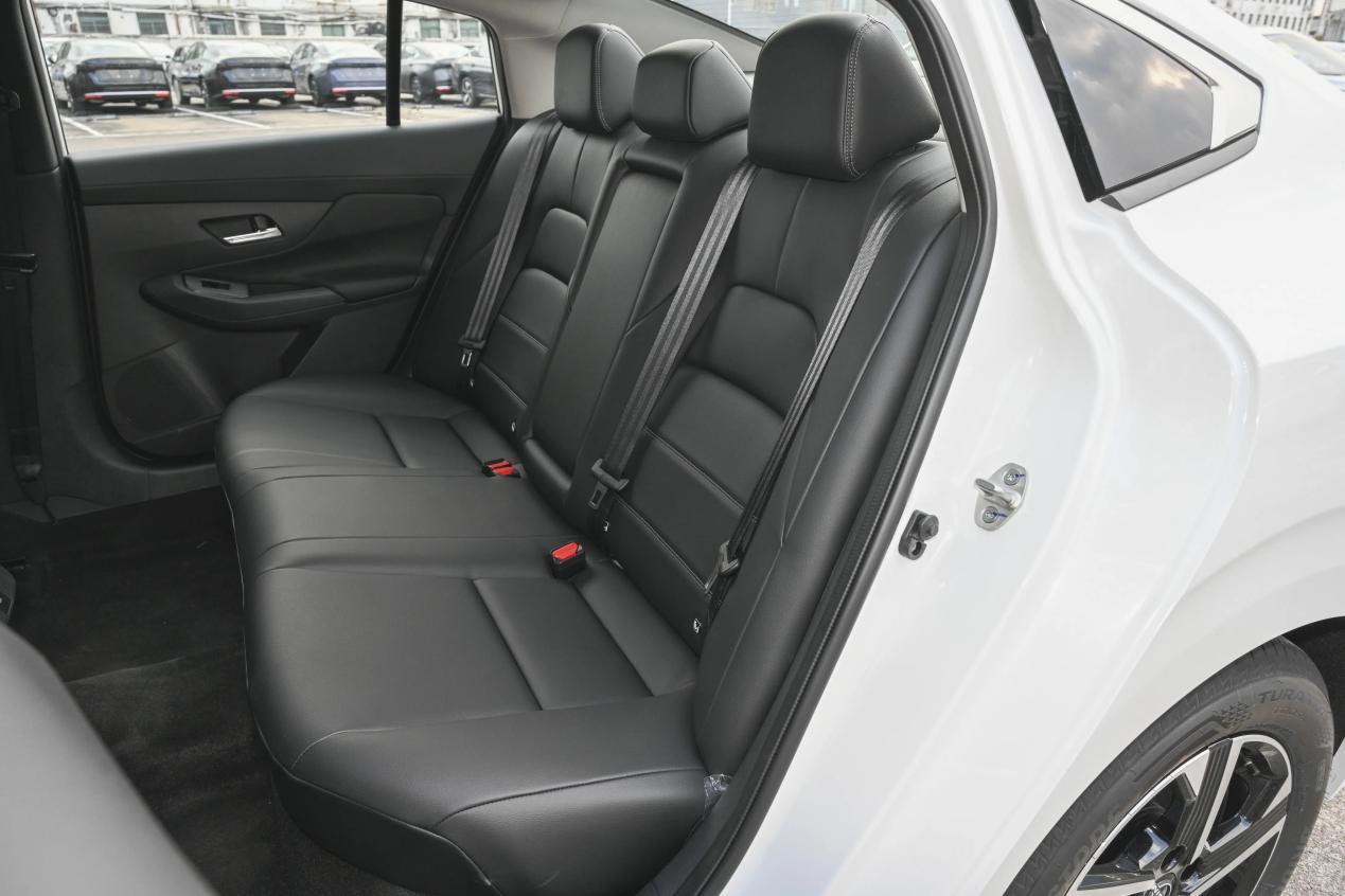 然后车尾用上了贯穿式的尾灯,LOGO也可以发光了。车身门把手依旧是最传统的机械式结构,而且车身侧面线条和老款几乎保持一致。新款长宽高分别为4656×1825×1448mm,轴距和老款保持一致,2712mm。底盘依旧用的是前麦弗逊+后扭力梁式结构。所以这一代的轩逸,严格意义上说,并不是全新换代,仅仅是外观,内饰以及配置方面的升级。